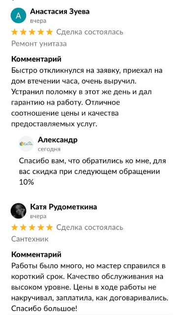 Более 10 лет ремонтирую сантехнику и имею большое количество благодарных клиентов.